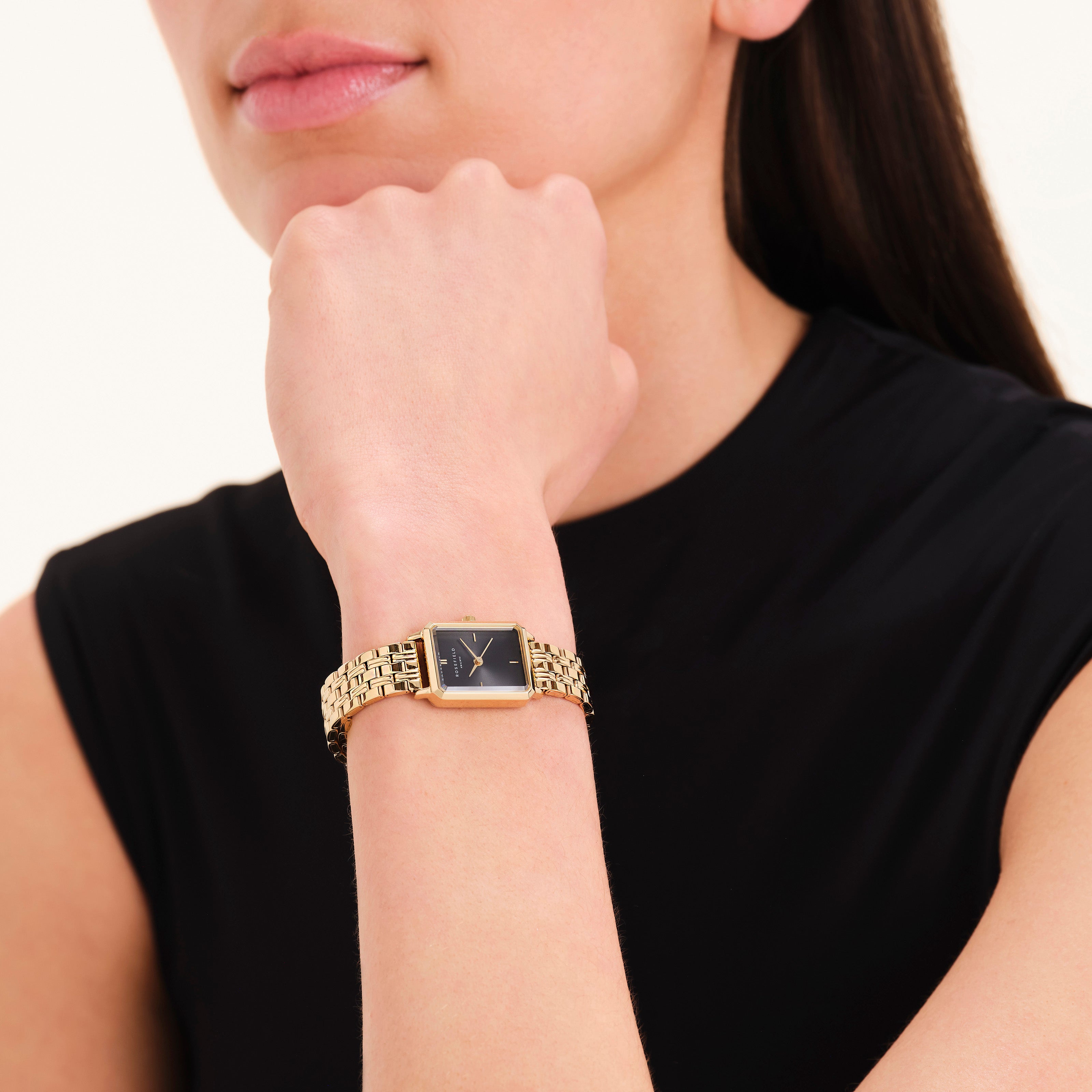 De Octagon XS past perfect om de smallere pols. Het 24mm achthoekige horloge heeft een moderne uitstraling, met klassieke details zoals 3D-facet glas en een elegante 5-link horlogeband van verguld roestvrij staal.