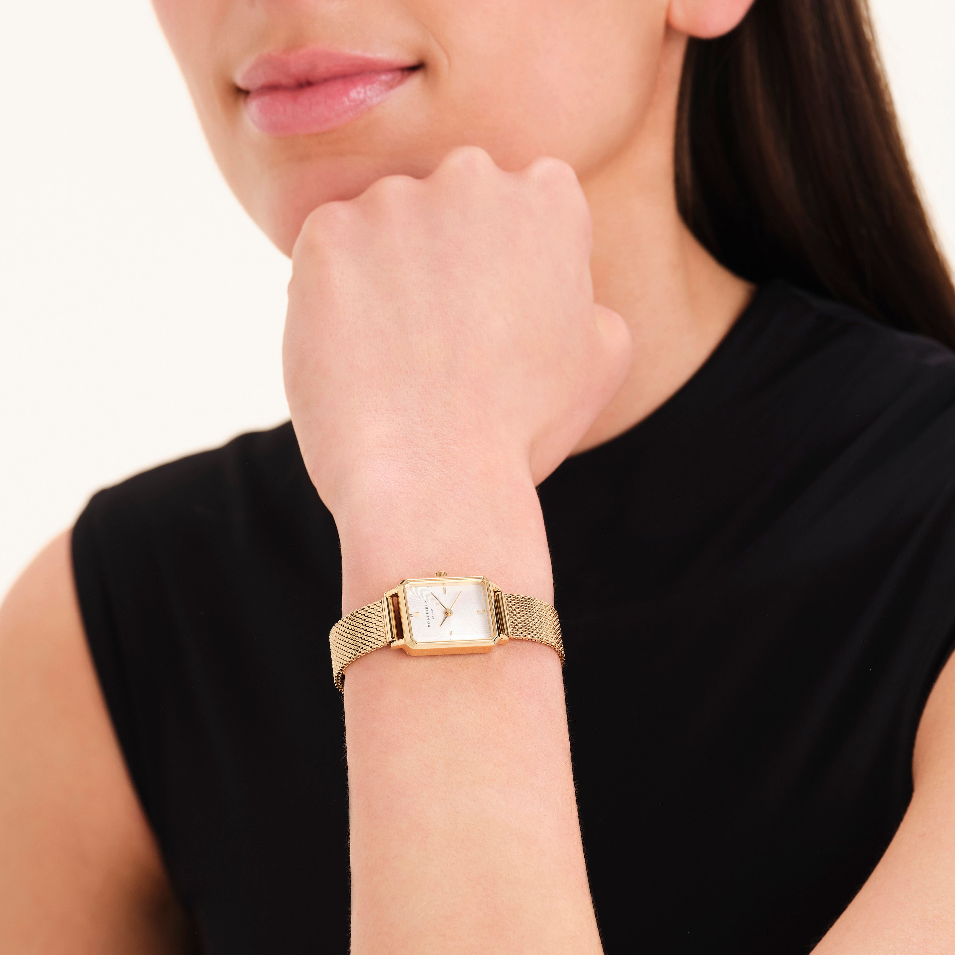 De Octagon XS past perfect om de smallere pols. Het 24mm achthoekige horloge heeft een moderne uitstraling, met klassieke details zoals 3D-facet glas en een elegante 5-link horlogeband van verguld roestvrij staal.